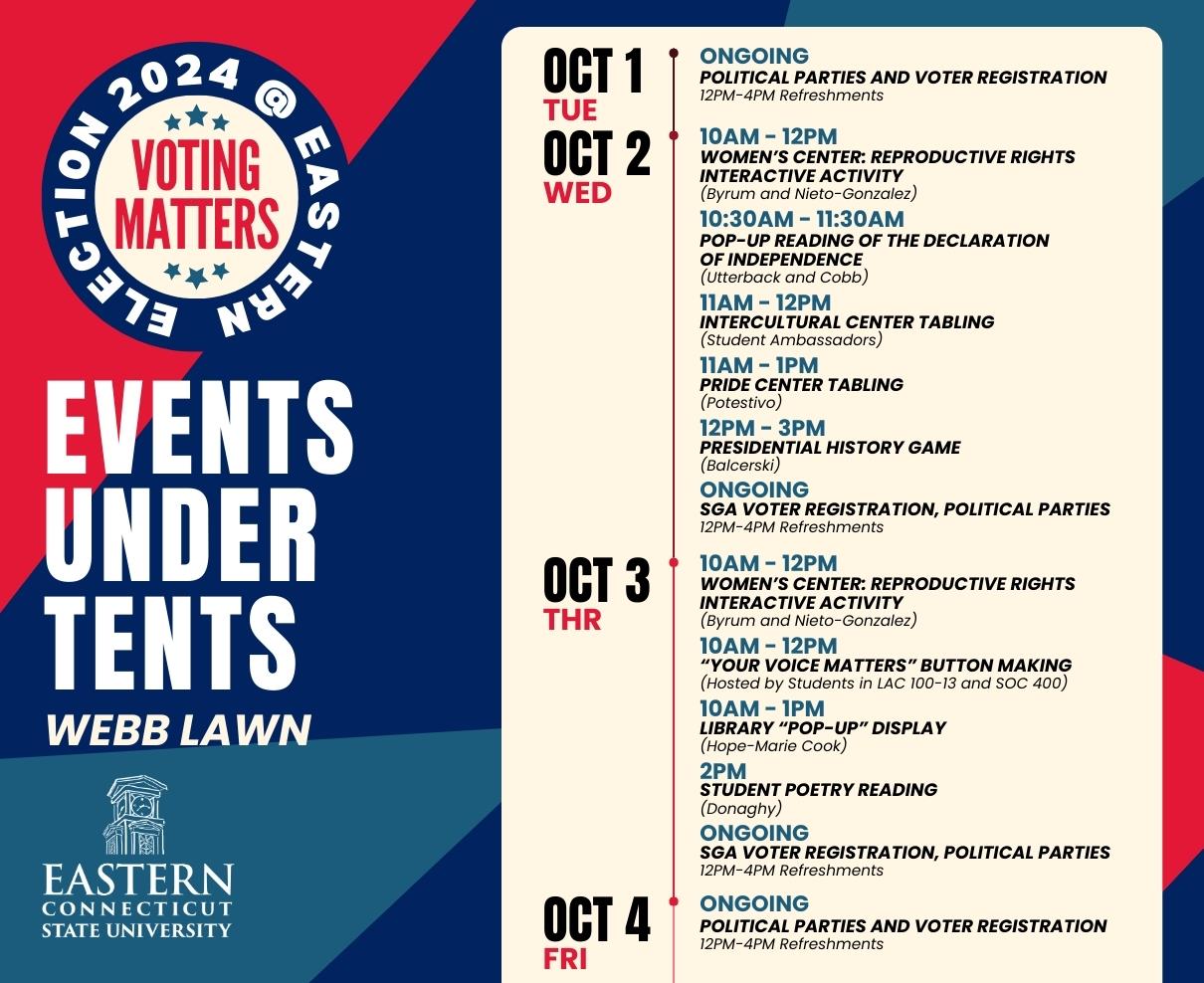 This event will feature representatives from the Democratic and Republican Parties, voter registration, poetry readings, a dramatic retelling of the Declaration of Independence, and more.